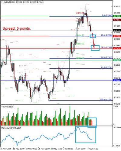 AUDUSD Новостной фон: Пара продолжает снижаться на фоне фиксации прибыли после сильных данных по заявкам на пособие по безработице в США, которые были опубликованы в четверг. Также на пару негативно влияет ожидание результата заседания ФРС по денежной политике, которое пройдет 14-15 июня.
