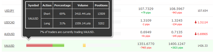Техническийанализ парыXAU/USDна 03.07.2019 Золото протестировало уровень поддержки, после чего продемонстрировало резкий и стремительный рост. Более того, движение было на крупном объеме, что является отличным бычьим сигналом. В данный момент цена торгуется вблизи уровня сопротивления 1435.30. Таким образом, мы можем рассмотреть сценарий пробоя данной отметки, что будет отличным сигналом для открытия длинных позиций. Пробойное движение должно быть уверенным, стремительным и на крупном объеме, что будет более точным и сильным сигналом для входа в рынок. Стоп лосс стоит ставить чуть ниже пробойного объемного бара. Потенциал сделки составляет более 150 пунктов. Что касается сентимента или настроения рынка, то данный технический индикатор полностью подтверждает наш торговый сценарий открытия длинных позиций по золоту, так как большинство розничных трейдеров находятся в коротких позициях (торговля против «толпы»).