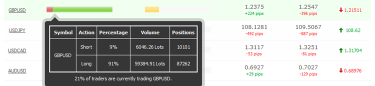 Что касается сентимента рынка, то данный технический индикатор полностью подтверждает наш торговый сценарий открытия коротких позиций по фунту, так как большинство розничных трейдеров находятся в длинных позициях (торговля против «толпы»).