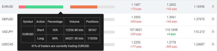 Что касается сентимента рынка, то данный технический индикатор указывает на равенство между покупателями и продавцами среди розничных трейдеров. Таким образом, стоит дождаться выхода пары из консолидации и только после этого использовать данный индикатор.