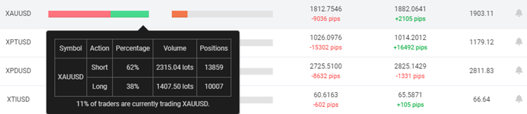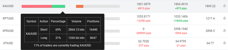 Что касается сентимента рынка, то данный технический индикатор полностью подтверждает наш торговый сценарий открытия длинных позиций по золоту, так как большинство розничных трейдеров находится в коротких позициях (торговля против «толпы»).